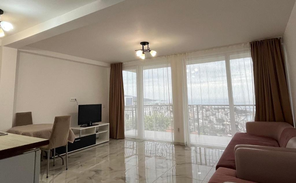 Featuring a private entrance, this air-conditioned apartment is consisted of of 1 living room, 1 separate bedroom and 1 bathroom with a shower and a hairdryer. The well-equipped kitchen features a stovetop, a refrigerator and kitchenware. The spacious apartment offers soundproof walls, a tea and coffee maker, a seating area, a flat-screen TV with satellite channels, as well as sea views. The unit offers 2 beds.
