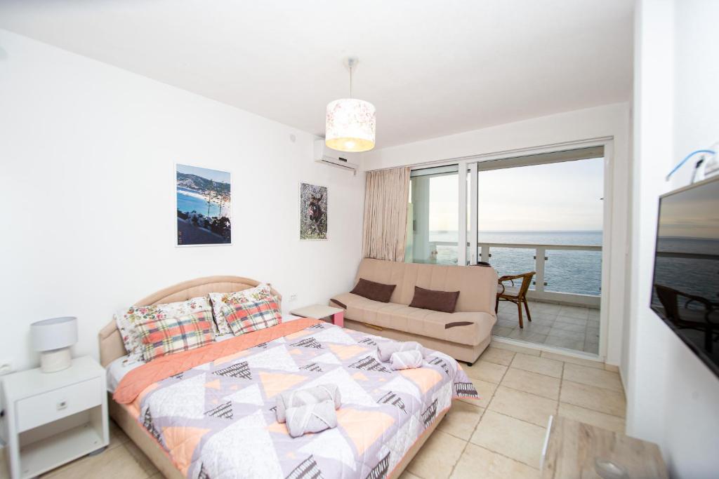 Meals can be prepared in the well-fitted kitchen, which comes with a stovetop, a refrigerator, kitchenware and an electric kettle. The spacious studio provides air conditioning, a private entrance, a terrace with sea views as well as a private bathroom featuring a bath or a shower. The unit offers 2 beds.