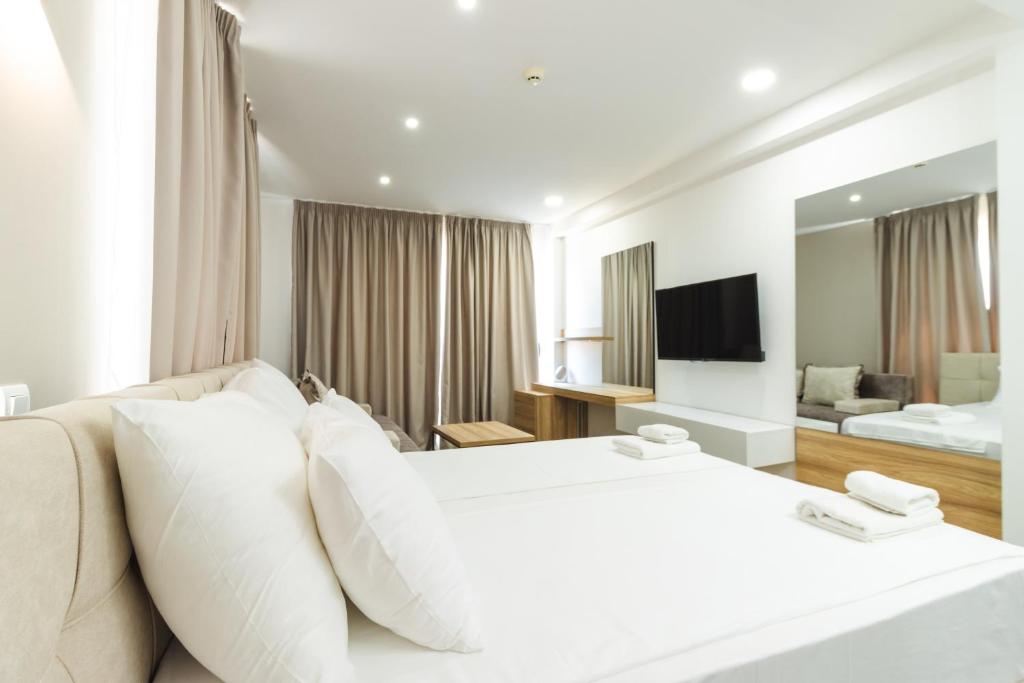 Guests can book room types like Deluxe Double Room with Balcony and Sea View, Deluxe Quadruple Room, Duplex Quadruple Room and Deluxe Double Room with Side Sea View at Lux Hotel M.