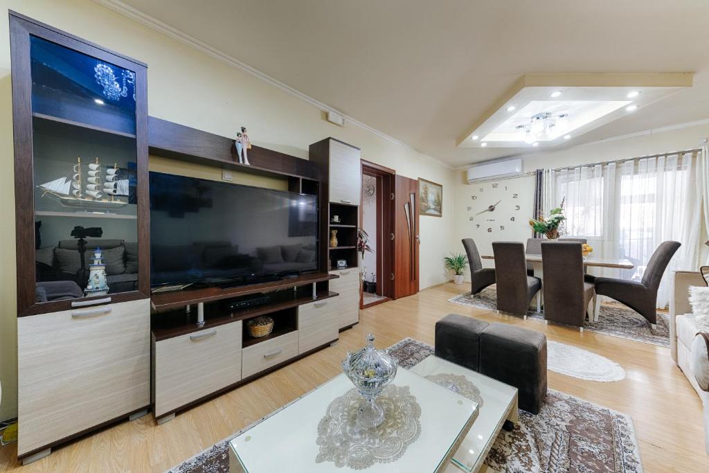 The spacious family room has a private bathroom, air conditioning, a private entrance, as well as a seating area with a flat-screen TV. The family room's kitchen, which features a refrigerator and a dishwasher, is available for cooking and storing food. A sofa, a TV, a wardrobe and a terrace are available in this family room. The unit has 3 beds.